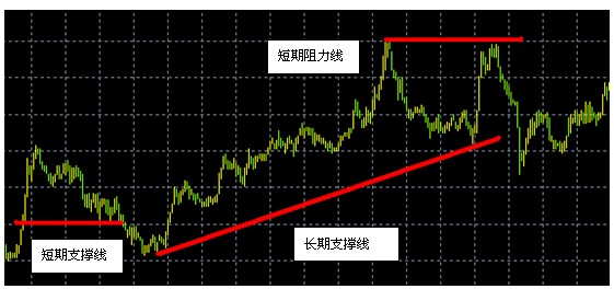 a) 支撑线和阻力线